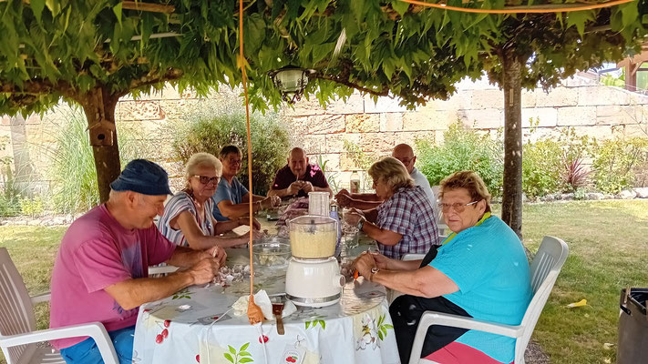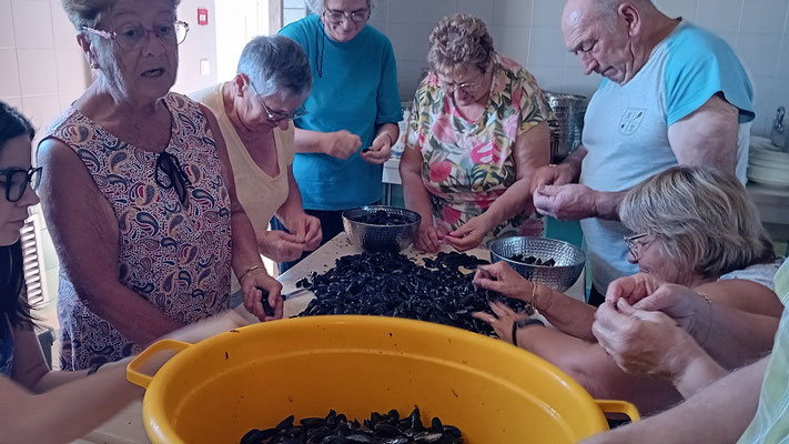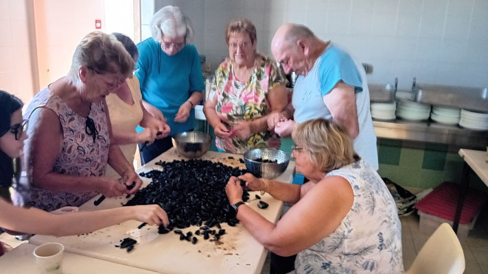 Le rendez-vous est fixé à 14 heures pour l'ensemble des participants, incluant les douze bénévoles engagés d'une part dans le nettoyage des moules, et d'autre part dans la préparation des plateaux de fromages, desserts et l'ouverture des bouteilles.