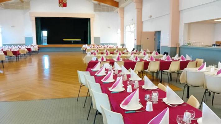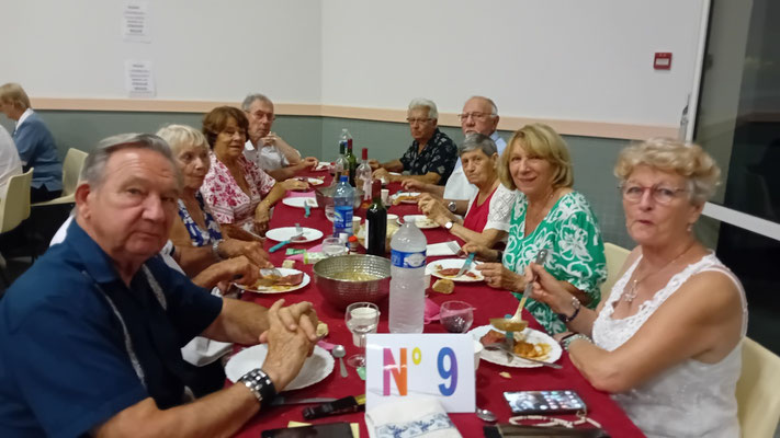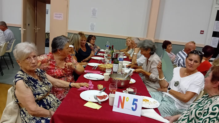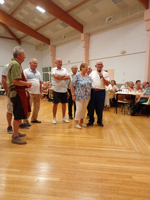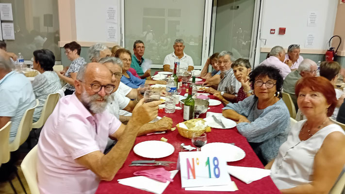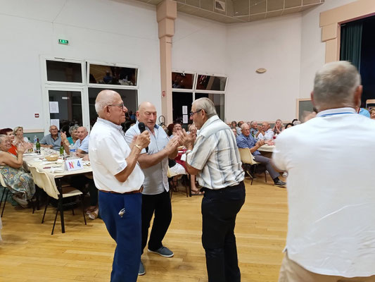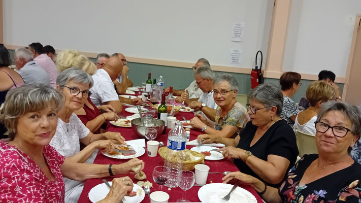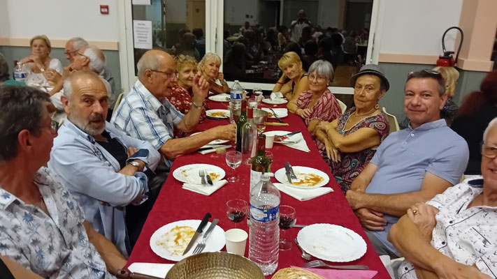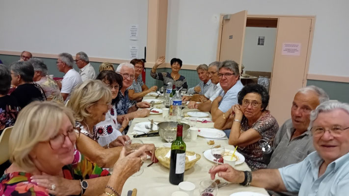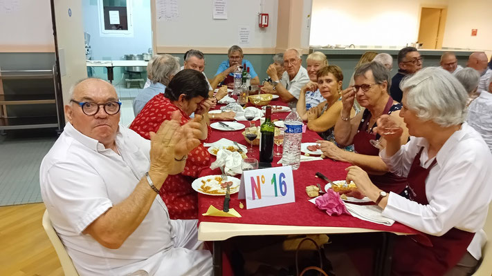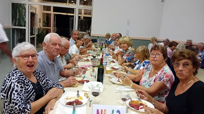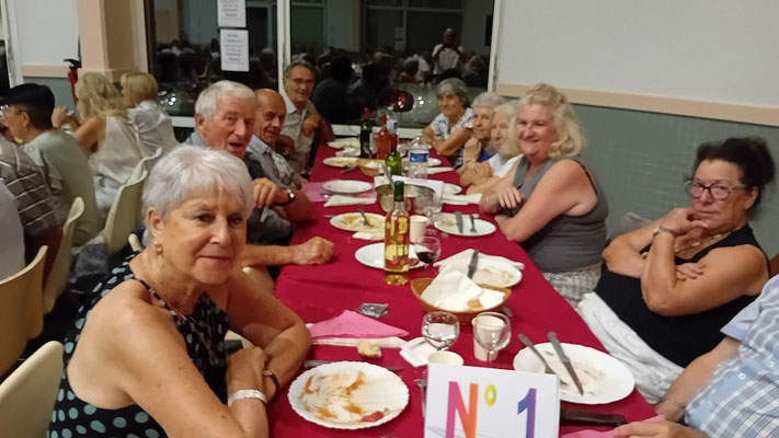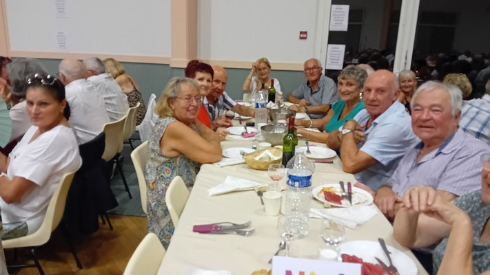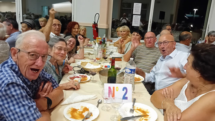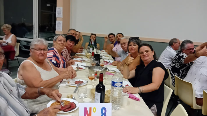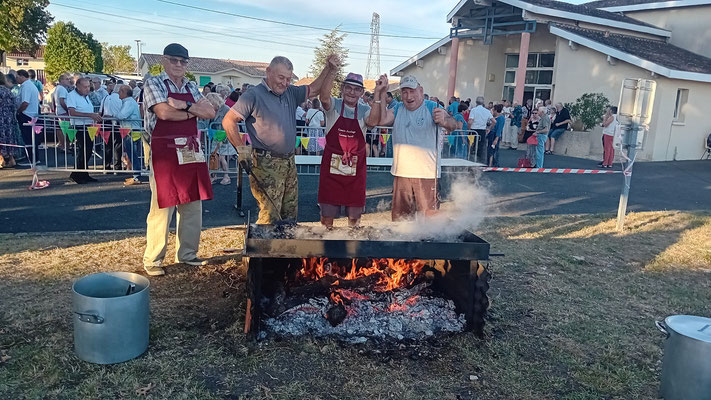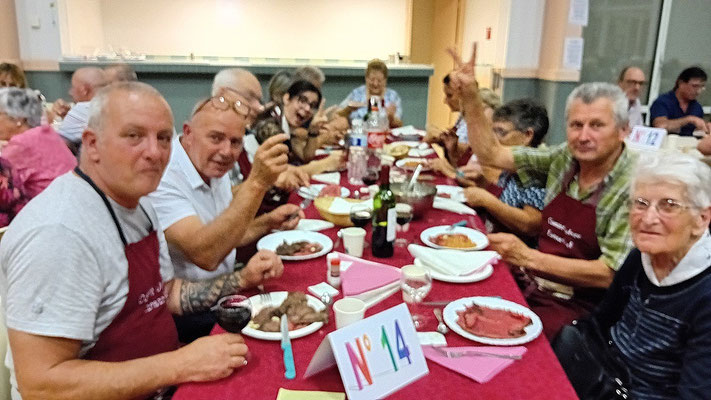 Cette année, une nouveauté : le service de la viande à l'assiette, afin de garantir à chacun une portion adéquate de viande. En effet, le service à plat entraînait des désavantages, où ceux qui se servaient en premier prenaient des portions généreuses, tandis que les derniers à servir n'obtenaient pas toujours la part désirée, ce qui s'est déjà produit. Ce nouveau service, bien qu'un peu plus long, s'est avéré plus régulier, permettant à tous de se régaler des haricots en grains à la tomate, ravissant ainsi les papilles, le tout accompagné des meilleurs crus de Côtes de Bourg.