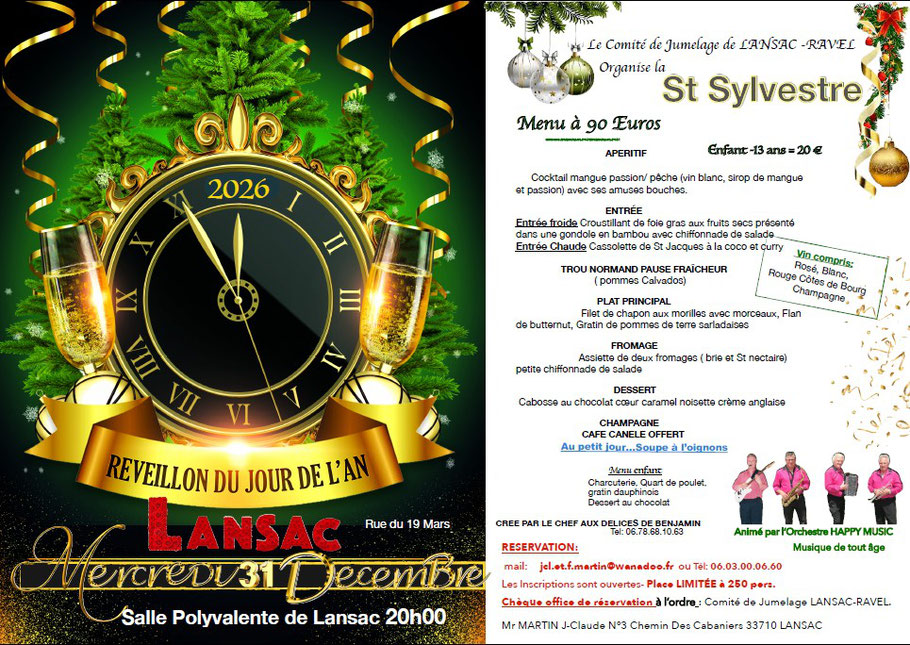 Aussi nous ne perdons pas de temps pour venir vous présenter le programme de notre réveillon de la St Sylvestre 2026.